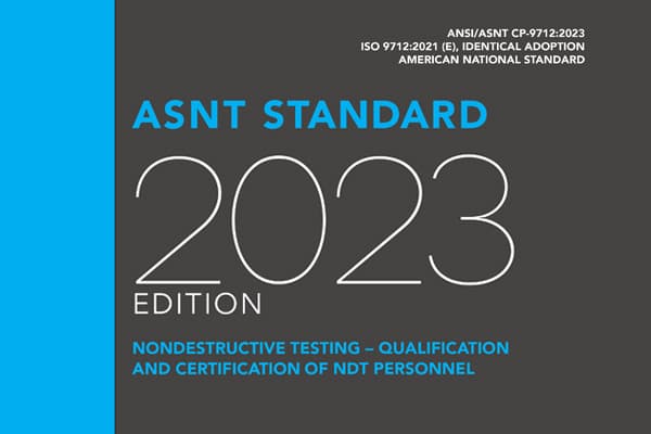 ISO 9712 is an international standard that provides guidelines for the global standardization of the qualification and certification of NDT personnel. The identical adoption of ANSI/ASNT CP-9712 (ISO 9712:2021):2023 was developed to provide the United States with an American National Standard that would incorporate the provisions of ISO 9712:2021.