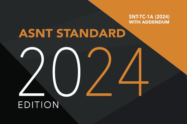 Recommended Practice No. SNT-TC-1A: Personnel Qualification and Certification in Nondestructive Testing (2024) provides guidelines for employers to establish in-house certification programs for the qualification and certification of NDT personnel. It provides the educational, experience, and training recommendations for each NDT method. Since 1966, employers have used this industry-valued document as the general framework for their employer-based certification programs. A few of the updates to the 2024 edition include: modified definitions to clarify meanings, restrictions on the use of eye drops to improve vision, the recommendation that employers assess whether referenced exams meet their requirements, the addition of the ASNT 9712 Program, the recommendation that personnel administering written examinations are trained. It is recommended that SNT-TC-1A (2024) be used in concert with ANSI/ASNT CP-105: ASNT Standard Topical Outlines for Qualification of Nondestructive Testing Personnel (2024), to be released in summer 2024.